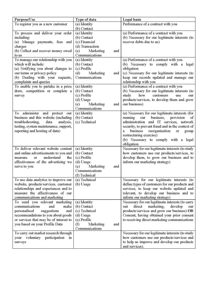 We may also analyse your Identity, Contact, Technical, Usage and Profile Data to form a view which products, services and offers may be of interest to you so that we can then send you relevant marketing communications.